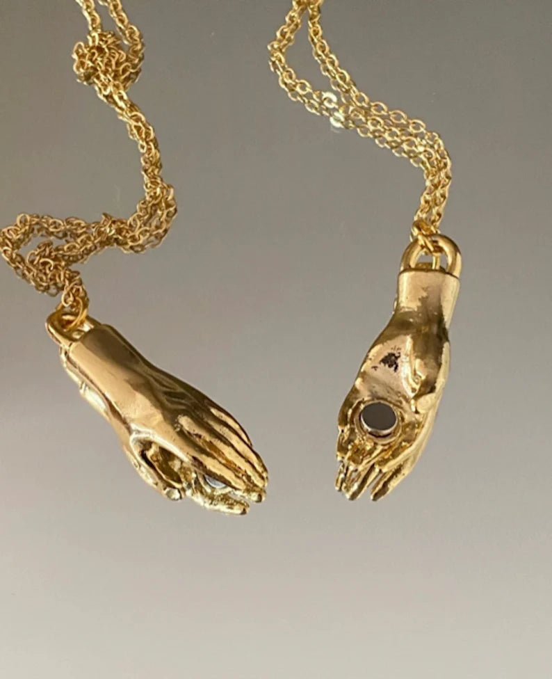 2pcs Magnetic Hand Friendship Love Necklace, Golda and Silver Plated, Hand in Hand, Lover Necklace, Magnetic Hand, Magnetic Necklace