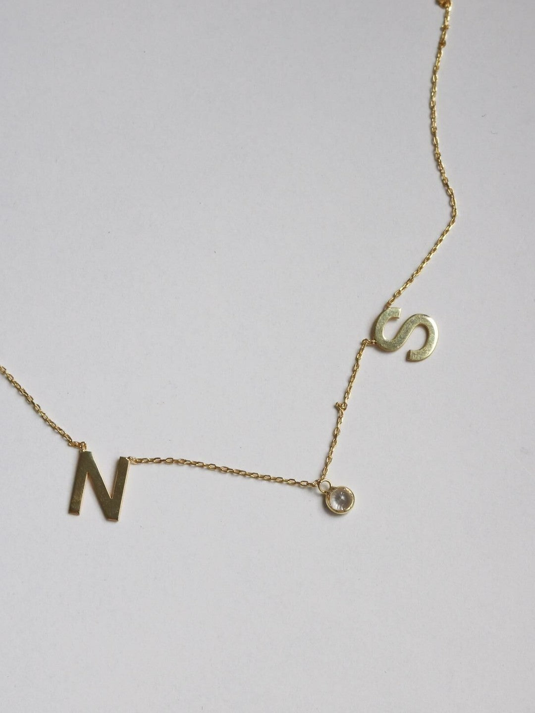 Two Letters and a Stone Necklace, 925 Sterling Silver
